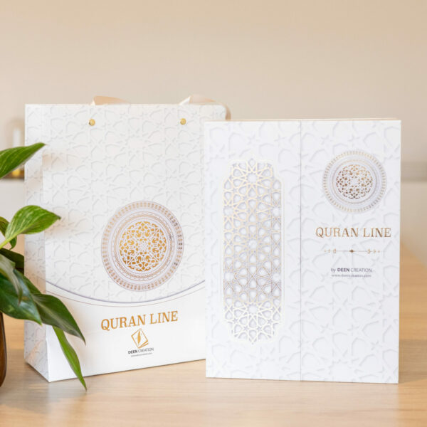The design of the cover, gift box, and gift bag is truly unique, combining classical Islamic calligraphy with contemporary high-quality production. We aimed to reflect a blend of Eastern and Western excellence, making the Quran Line Gift Box an ideal present for your loved ones or a special treat for yourself.